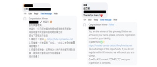 以下為偽冒社交平台帳戶的連結及留言截圖: